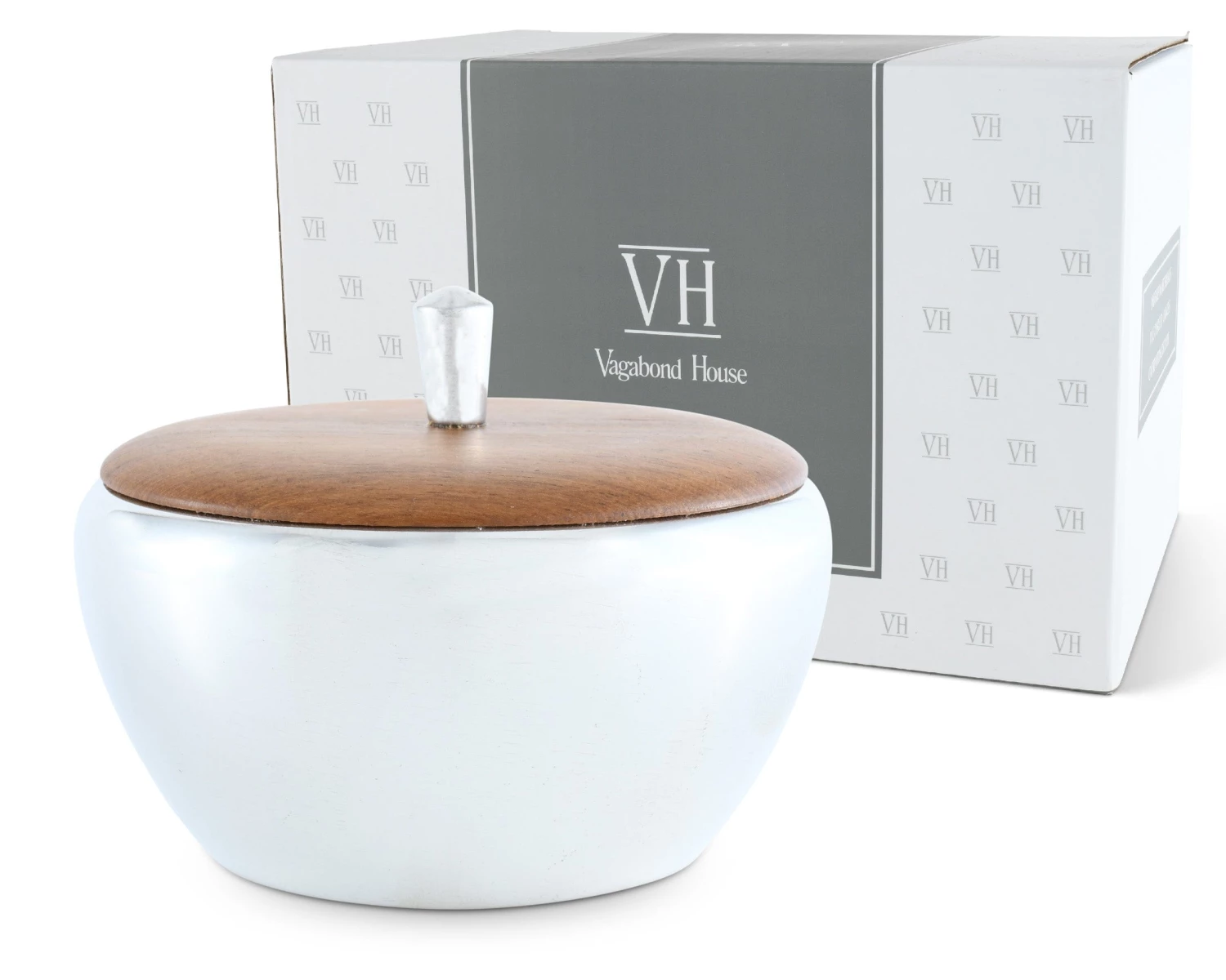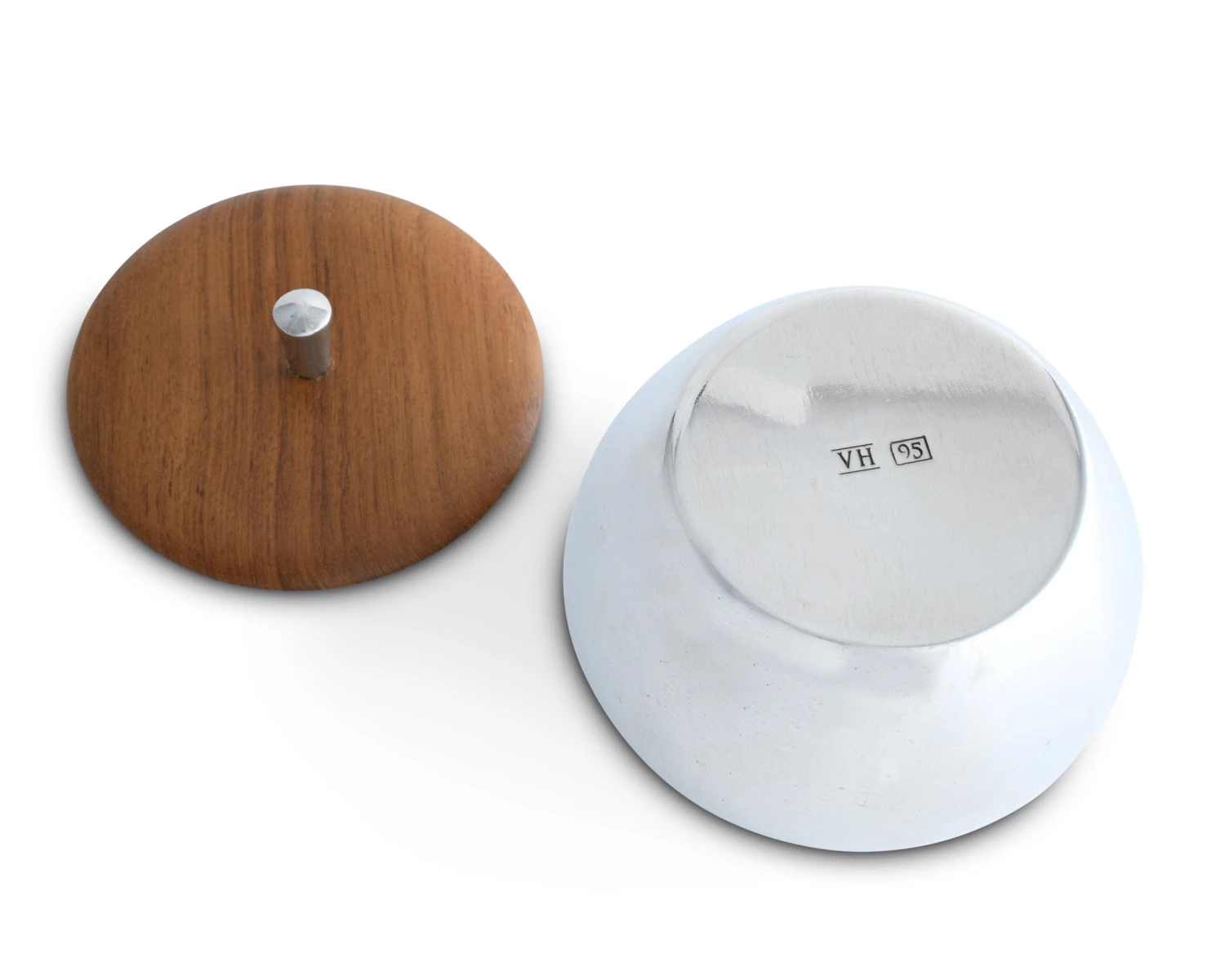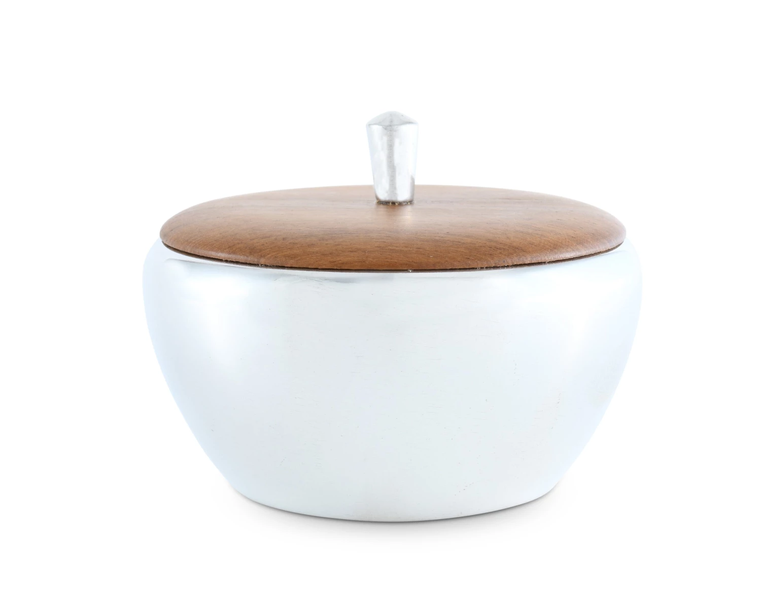 Enhance your snacking experience with our Tribeca pewter and wood serving bowl, the perfect addition for your indoor or outdoor serveware. You can add any type of sauce or dip to these condiment containers with lids for a delightful time with loved ones!