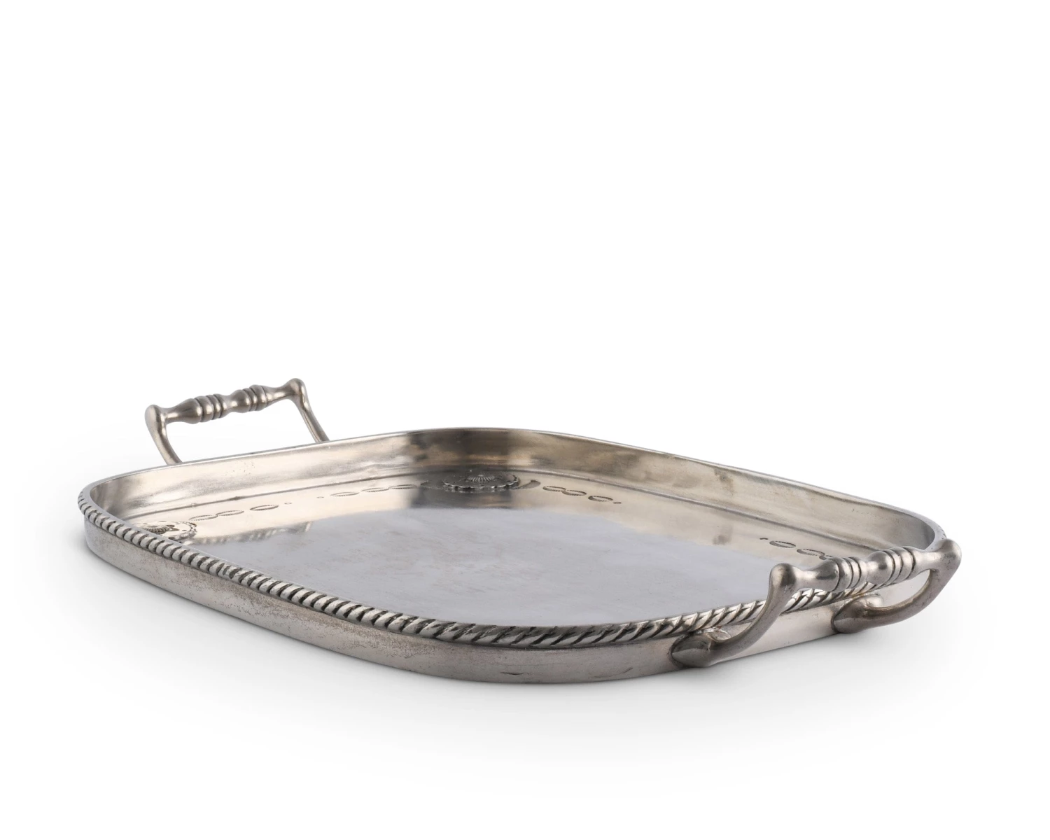 Vagabond House’s pure pewter serving tray is elegantly engraved with a western motif featuring Western style graphics and Texas star inspired Concho badges.