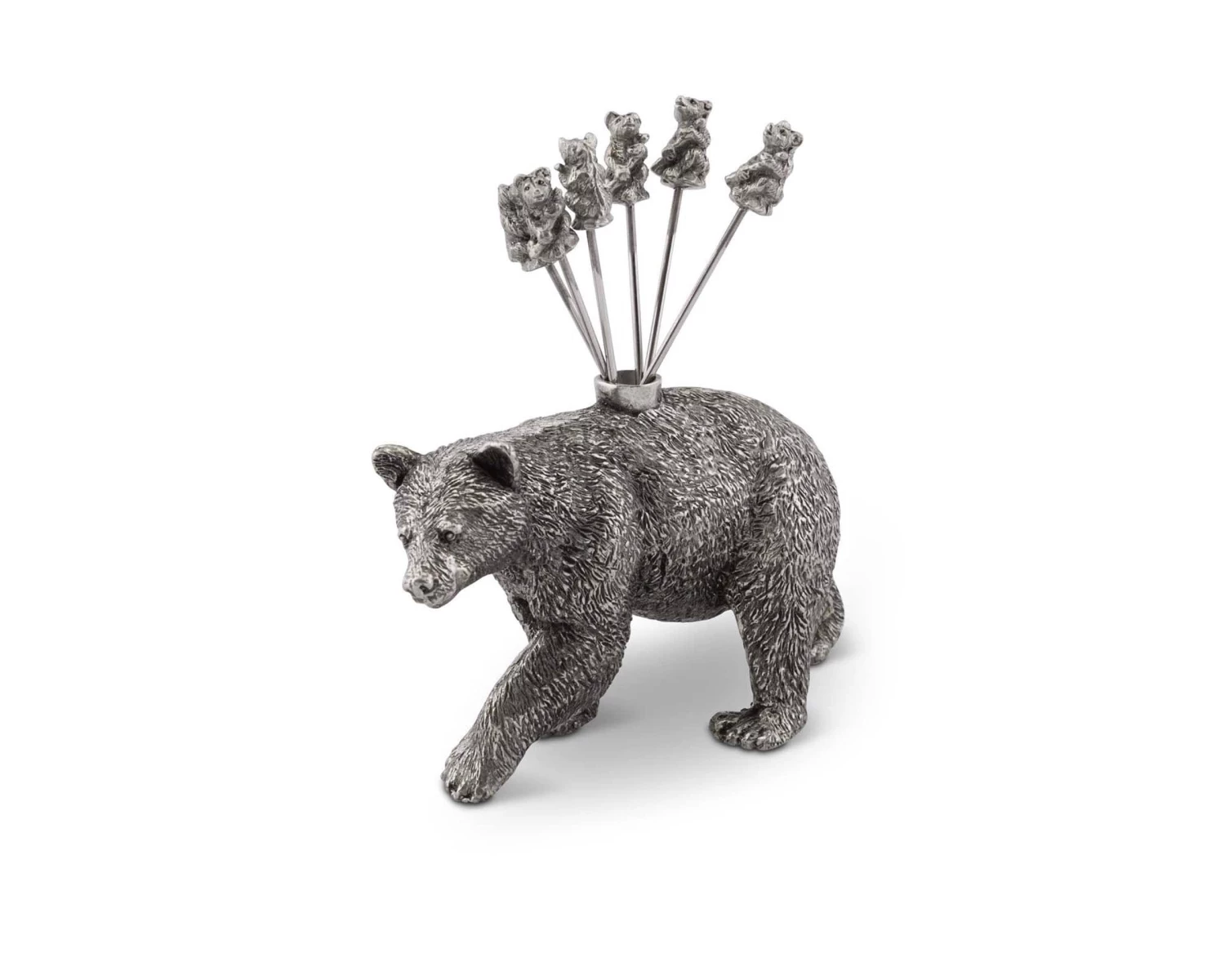 Buff up your table accents by adding these Pewter Black Bear Cheese Picks from Vagabond House into the mix. Tiny bear cubs adorn each pick as they rest inside a hole on their mother’s back.
