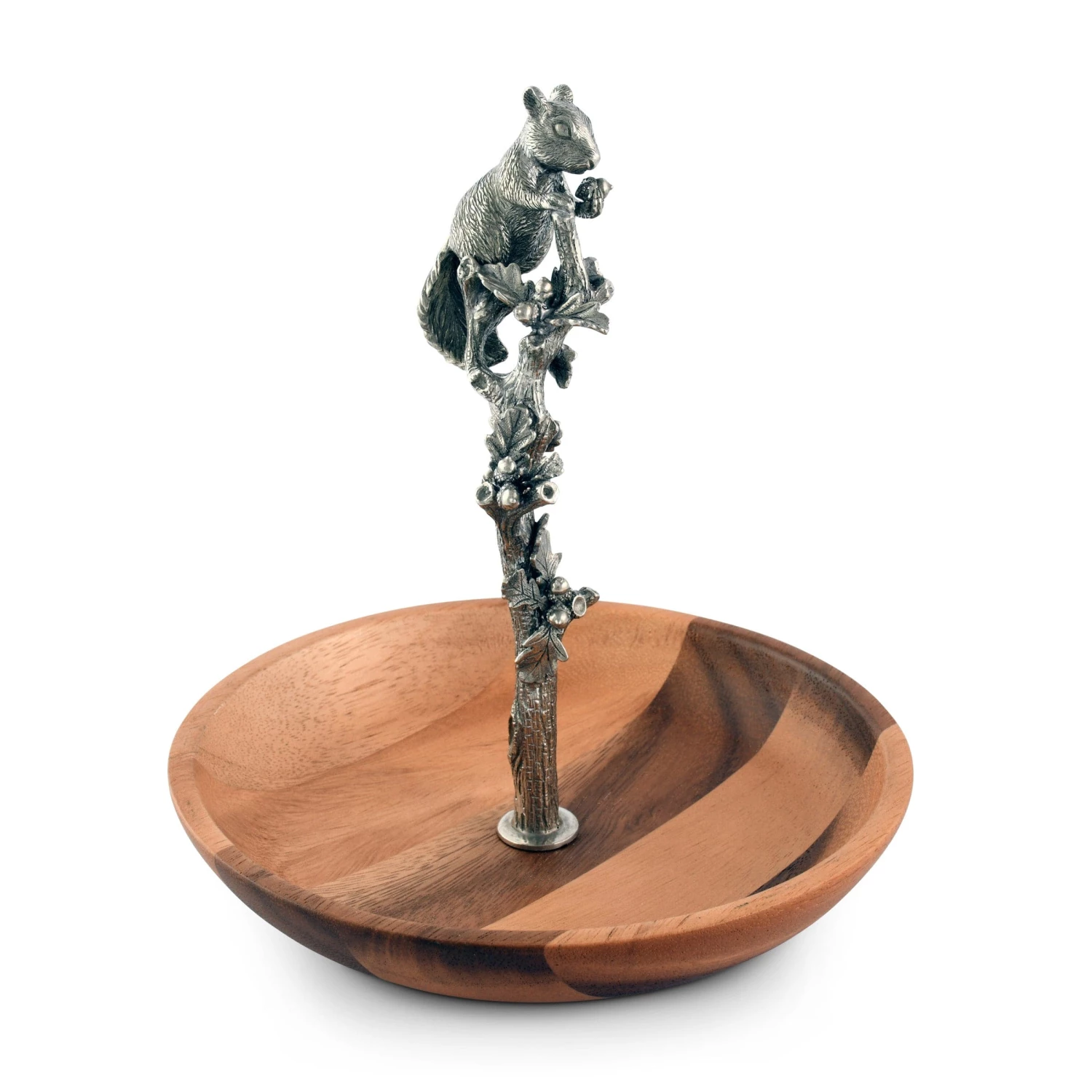 Watch visitors go nuts with delight when they see this squirrel candy dish gracing your coffee table. We pair the beauty and warmth of durable acacia hardwood with luxury-grade pure pewter to create a handcrafted serving piece that lasts for years.